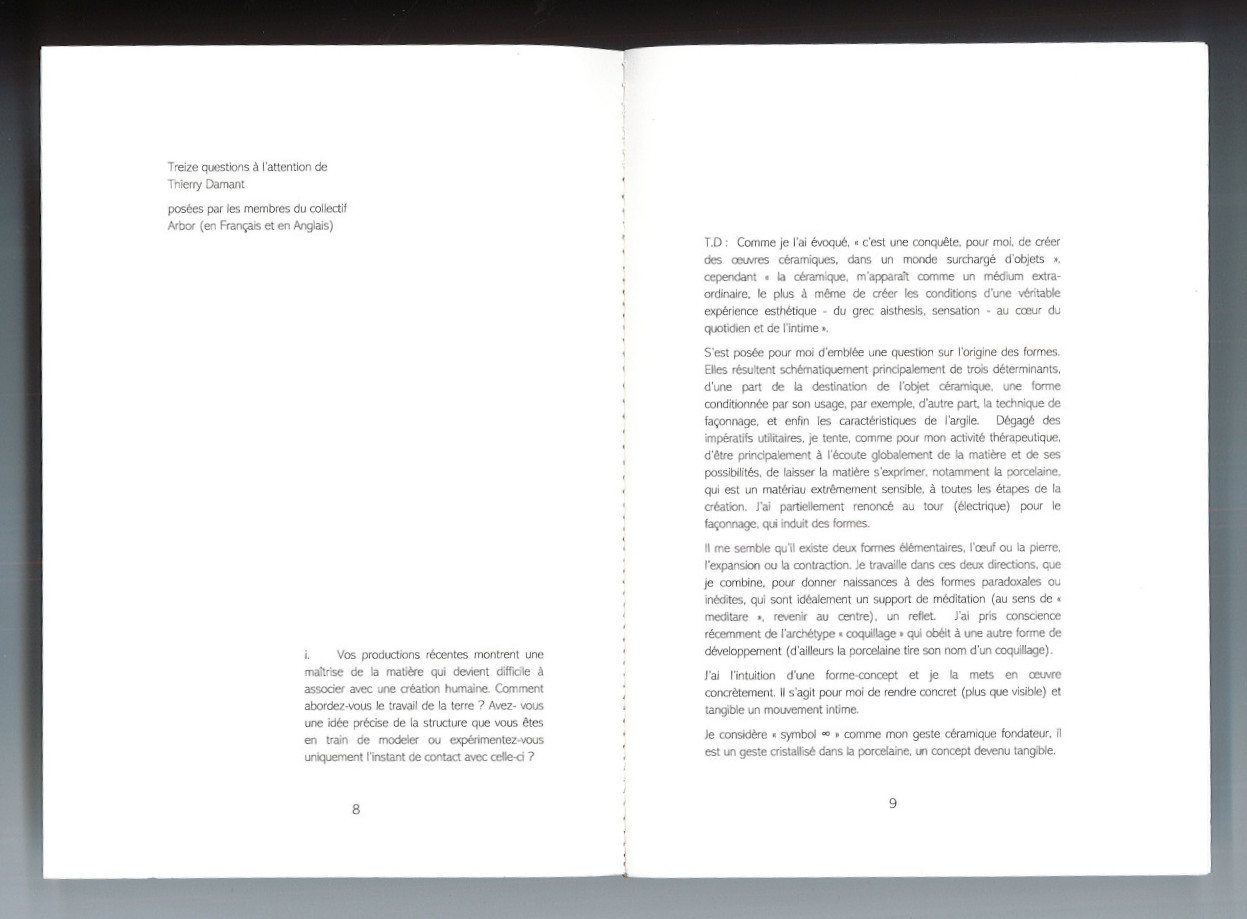Thierry Damant, Ceramicist, 22 pages, 80 copies, published in 2022 and available at the library of Musée national Adrien Dubouché, Limoges France.